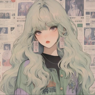 绿头发旧漫复古风女头图片13张