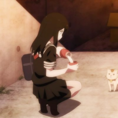 女生喂猫咪一左一右动漫情头图片