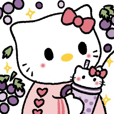 手绘凯蒂猫喝奶茶一左一右情头图片